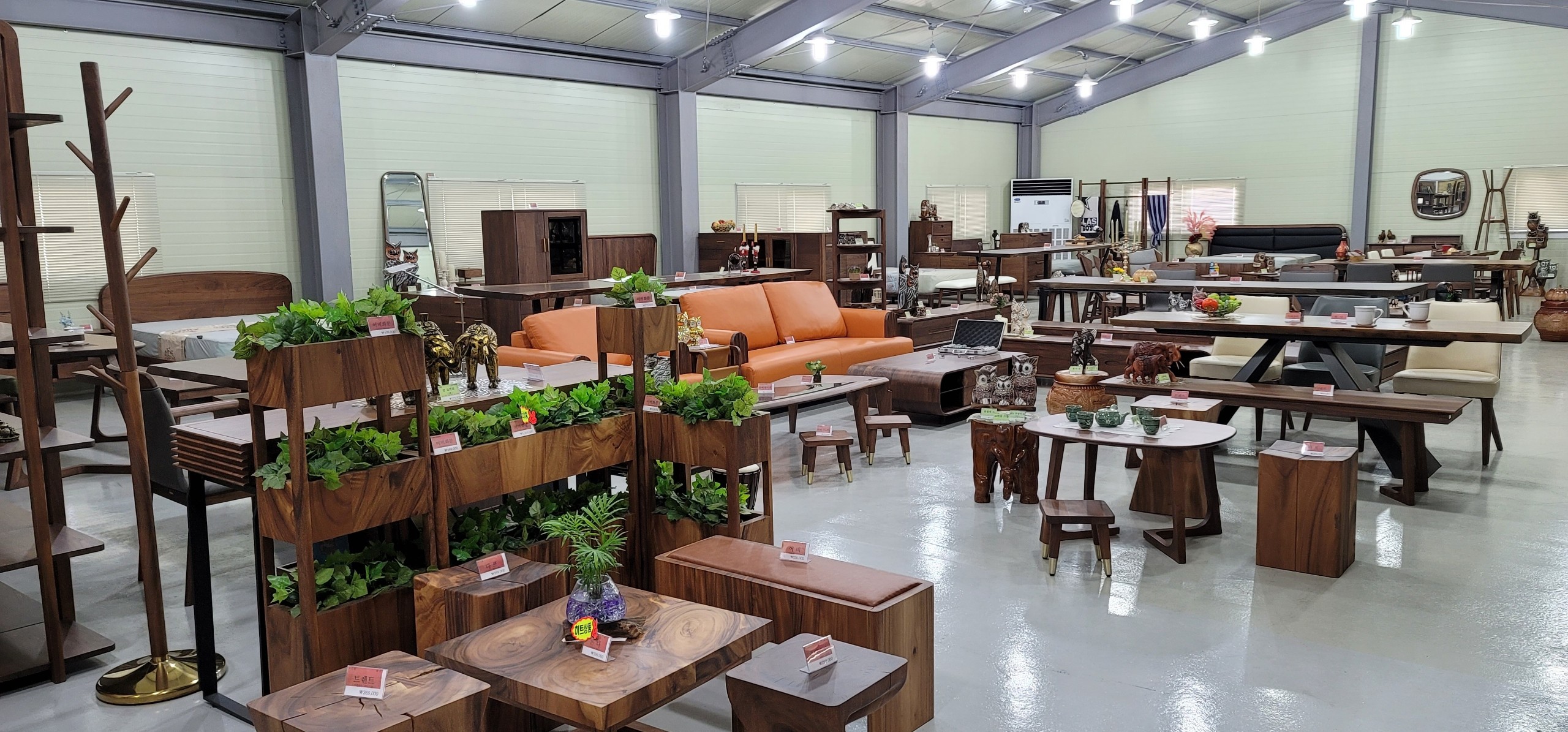 이 기업이 주력으로 내세우고 있는 상품은 우드슬랩 테이블과 월넛가구. 우드슬랩은 통원목으로 불리는 자재로 말 그대로 온전한 하나의 나무를 가공해 만들어내는 제품을 말한다. 원목이기에 튼튼한 것은 물론이고, 디자인적으로도 자연의 흐름이 고스란히 묻어있어 고급스러운 느낌을 주는 가구다.